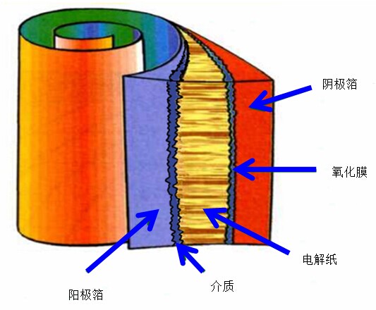 鋁電解電容器的內部結構圖顯示