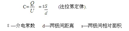 ε—介電常數 d—兩極間距離 s—兩極間相對面積