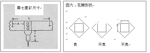 (6)檢驗壓釘之尺寸﹐大口徑之電容器﹐如壓釘尺寸不合規格時﹐卷取時易造成不良。