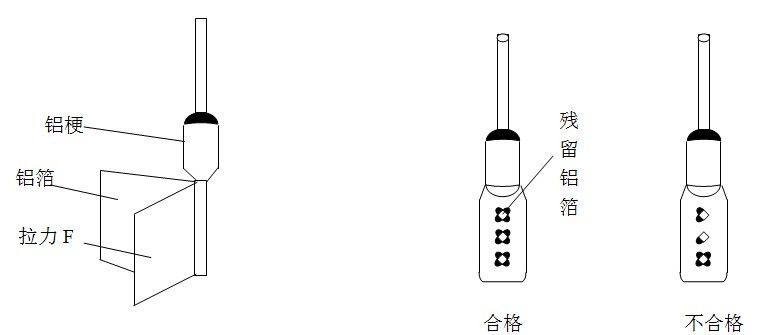 1.2, 引線要正確地鉚接在鋁箔的規定位置上,鋁梗打扁頂部與鋁箔距離為S,如下圖