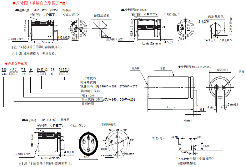 ●保證105℃ 5000小時標準品。(疊(die)加紋波電流);