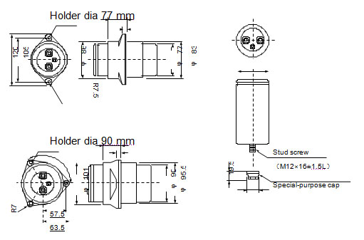 (2) Stud screw capacitor Best suited for cutting back on assembly costs. (For vibration