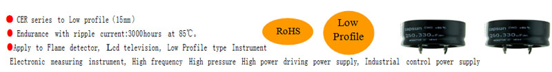 • 15mmheight,low profile Aluminum electrolytic capacitor