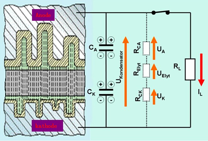 ,During discharge, if the polarity of an electrolytic capacitor reverses, the voltage distribution over the internal resistances reverses and builds up a voltage of opposite polarity to the cathode foil; higher ripple current