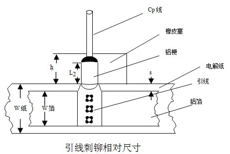 1.2, 引線要正確地鉚接在鋁箔的規定位置上,鋁梗打扁頂部與鋁箔距離為S,如下圖