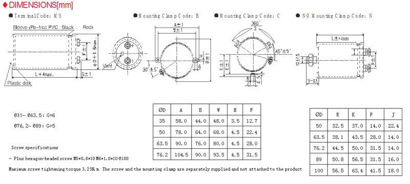 Insulation Withstanding Voltage | When a voltage of 2,000Vac is applied for 1 minute between the terminals that are connected to each other and to the mounting clamp on the insulating sleeve covering the case, there shall not be electrical damage.。 | |||