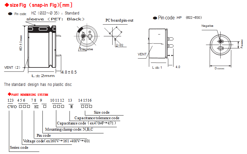 • Standard Aluminum electrolytic capacitor