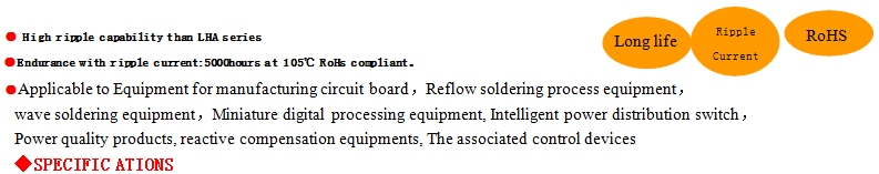 Endurance | The following specifications shall be satisfied when the capacitors are restored to 20℃ after subjected to DC voltage with the rated ripple current is applied (the peak voltage shall not exceed the rated voltage) for 5,000 hours at 105℃。 | ||